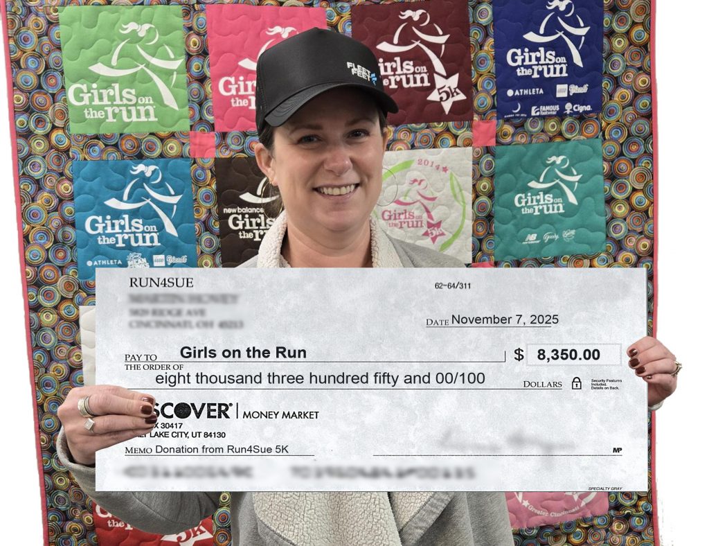 All donations to Run4Sue and Girls On The Run Greater Cincinnati fund the special “Sue’s Running Buddies” account, which pays registrations for the persons of age chosen to accompany participants when financial need merits.